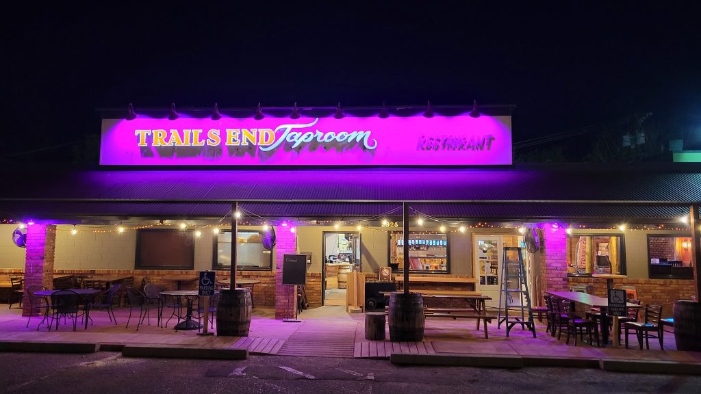 Beyond the dog-friendly patio, Trails End gives you plenty of space to spread out. The interior is cozy and trendy with a fireplace adding to the vibe, while fast service means you won’t be waiting around forever. Live music occasionally happens here too, adding to the atmosphere. The place is fully accessible with wheelchair-friendly entrances, parking, restrooms, and seating throughout. You’ll find free parking available, and they accept all major payment methods including mobile payments.